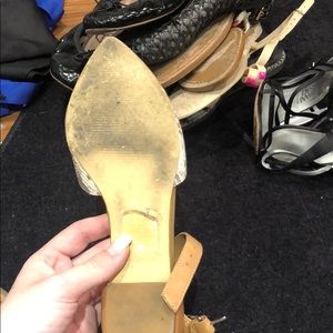 As shown worn flats camel and snake color