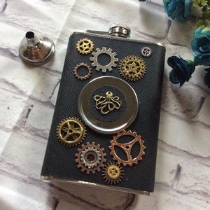 🌸 STEAMPUNK FLASK GEARS SHOT GLASS SET VINTAGE CUSTOM CUP MUG COOL GIFT SPECIAL