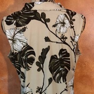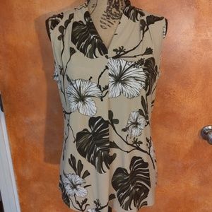 Liz Claiborne Career, Tan blouse with black white and olive accents . Maybe worn once in excellent like new condition