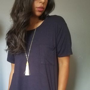 Add a touch of chicness to any outfit with this long tassled neckline. Super cute! I'm absolutely in love with this piece.