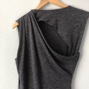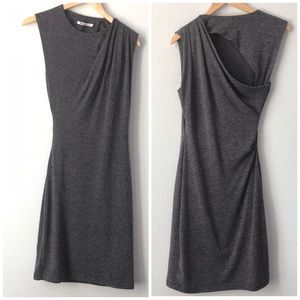 Heather blue T by Alexander Wang dress. Fitted. Wrap shoulder detail and back cutout. Polyester, rayon and spandex blend.