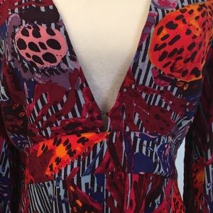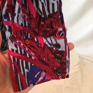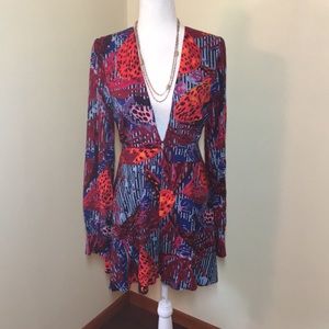 Beautiful colorful Free People shorts romper. NWOT. Hidden side zipper. Hook and eye closure at bust. Single button at back.