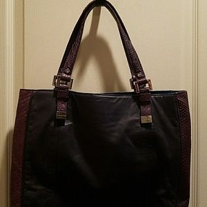 Navy 100% sheep skin, purple snake skin trim, open top magnet, double strap. Does have some damage on back of purse which is shown in pictures above. Will consider reasonable offers. 100% authentic.