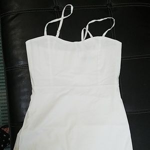 Size is One Size but would best fit a size Small. Measurements: 29" shortest length - 32" longest length (adjustable), 13" bust. In Excellent condition, never worn never washed without tags. Off white color.