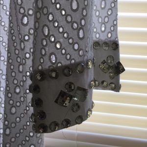 White blouse with rhinestones around the neck and wrists. Brand new never worn.