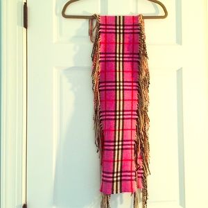 Very gently worn authentic Burberry scarf. Perfect condition. The pink color in the scarf is the shade pictured in the third picture.