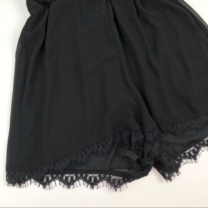 Emerald Sundae Black Lace Trim Long Sleeve Romper