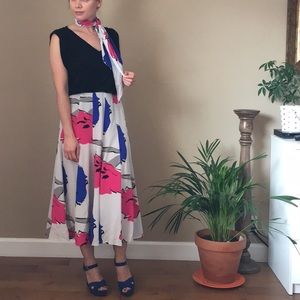 100% Silk floral print A-line flowy midi skirt