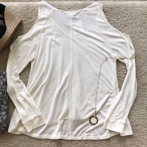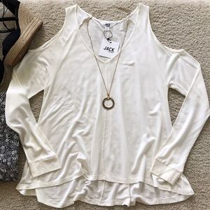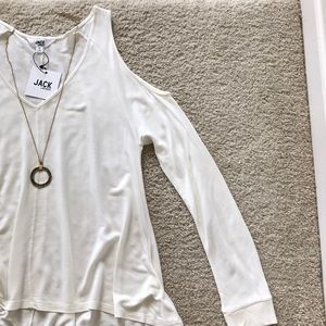 Jack by BB Dakota Bartemus Top in Ivory. Super cute, a it slouchy and easy to wear. Throw on with skinnies or leggings. Shoulder cutouts. Long sleeves with rubbed cuffs. Slightly hi lo styling. Lightweight french terry.