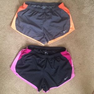 Nike dry fit running shorts with orange and pink stripes on the side. Worn a couple times and super comfortable but I grew out of them. Comment any questions!