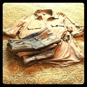 $ ⬇️ NWOT Calvin Klein Gray Collared Comfy Top with zippered front and convertible roll up sleeves with button tabs. So comfy. Never worn before I changed sizes. Make me an offer!