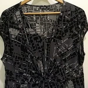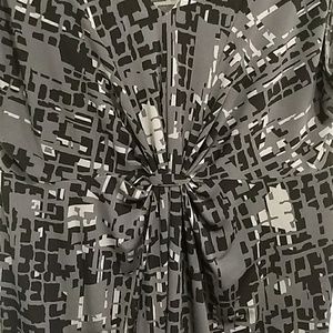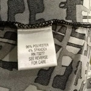 Size Petite Large. Fantastic grey pattern jersey slip dress. It doesn't look like much, but the fabric and cut is both comfy and flattering. In EUC, no flaws and never put in the dryer. Excellent work/office staple to accessorize and dress up or down. Incredibly comfortable.