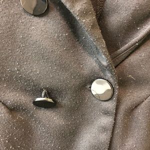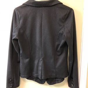 Black blazer, sweater material. Fairly worn with a loose button, imperfections shown in the photos - feel free to ask for more pictures. Super comfortable but I never wear anymore.
