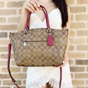 I've had the khaki saddle crossbody for a while now, I'm so tempted to get this purse. Love the khaki & hot pink colors so much!