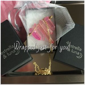Another gorgeous Estrella & Luna piece! Pink Aura quartz pendant on a 24” 14k gold plated brass chain. Pretty in Pink boho necklace!