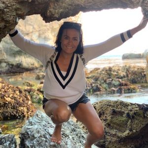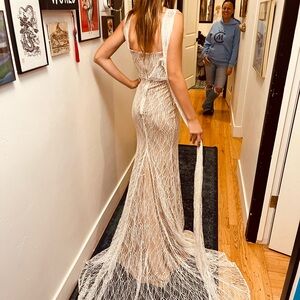 Hommage from Los Angeles army green vneck jumpsuit. Wore once, it fits wonderfully however my feet had a hard time fitting in and out of the bottom. Too much effort for me to be careful. Probably should have tried next size up.