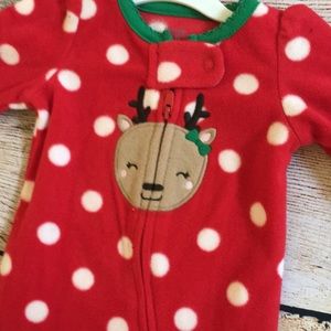 New. Several available. Red polka dot onesie. Newborn size. One piece zipper front and clasp. Great gift for new baby.