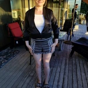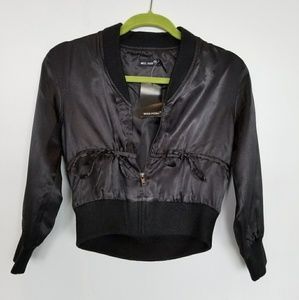 Black Cropped satin bomber jacket NWT!