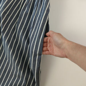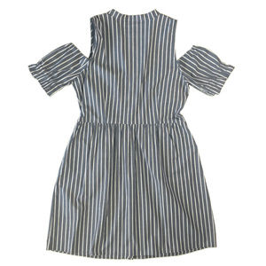 Fully button down Michael Kors dress with gold buttons, v-neck and cold shoulders. Sleeves have elastic at the top and bottoms. Elastic waist. Has pockets! Vertical stripes in white and "true navy," which is closer to a slate blue, in my opinion. New with tags. Size Large.