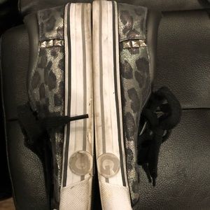 Guess shoes, used as you can see, I would think it could be more cleaned up then I did. I only used water to clean them. They are silver and black cheetah super cute!