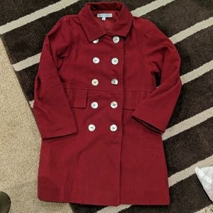 Dark reddish/burgundy pea coat, worn once, beautiful jacket, perfect shape.