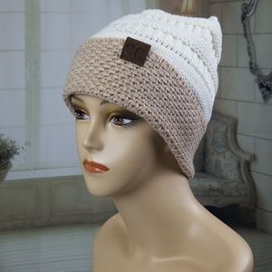 Super soft and a brand new style for this winter. Stay warm with this Two toned knit C.C Beanie in Ivory