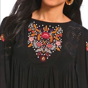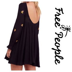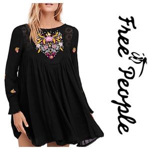 New with tags Free People Mohave Floral Embroidered Smocked Sleeve Prairie Shapeless Mini Dress.