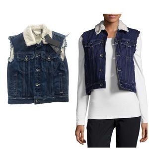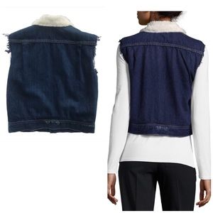NWT! Helmut Lang Blue Shrunken Faux Fur-trimmed Denim Vest