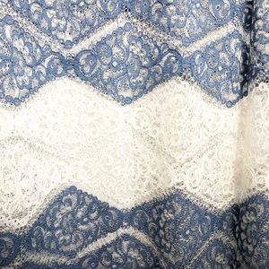 Laundry by Shelli Segal Size 14 XL Blue Stripe Lace High Mock Neck Sheer Blouse