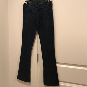 Low-rise, flattering boot-cut jeans are cut from lightweight stretch denim in a subtly faded dark-blue rinse, while tonal embroidery details the back pockets. Sold out at Nordstrom. This pair has been altered to my height (5’5), in mint condition brand new and never worn after alteration.