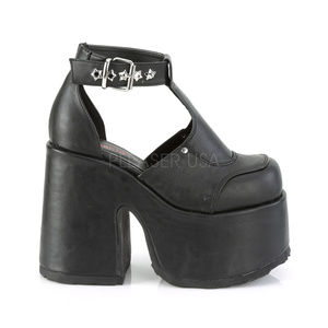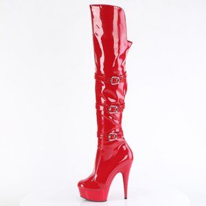 4" High Heel, 3/4" Platform Gothic Lace Up Boots. Triple Buckle Straps and Open Calf. Inside Metal Zipper Closure.