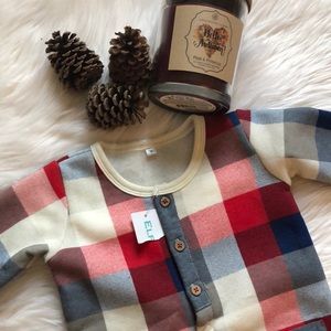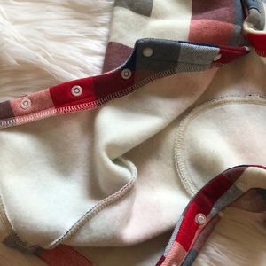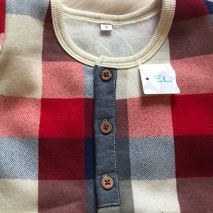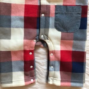 NWT. Size 6-12 months. Lined with super warm flannel like material, easy snap on buttons for diapers changes and adorable wood like buttons. Material isn’t super heavy, lightweight actually but very warm