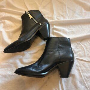 Gray Zara slip-on dress, never worn! Has a diagonal line across the bottom for the look of an asymmetrical cut. It’s similar to a t-shirt dress (very comfy) but more fitted. Looks adorable with sneakers in the summer or with boots and leggings in the winter.
