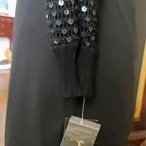 Knitted, cropped and sequined sweater pairs exceptionally well with office daywear, inclusive of evening attire. Sweater is a perfect semi-formal shoulder wrap and adds chic to crisp, white tops and denim bottoms. Hemlines are reinforced. NWT!