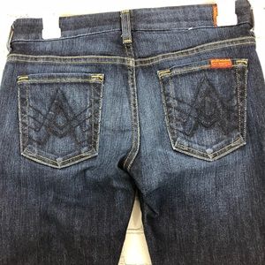 7FAM ‘A’ Pocket Jeans. Size 25. Waist flat: 14”. Rise: 8”. Inseam: 30”. EUC.