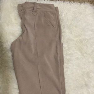 Beige pants that feel like soft suede. Has cute stitched crease down front of pants.