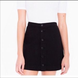 American Apparel black denim button up skirt in size S ~ fits 26 inch waist best! Gently worn very few times & is in really great condition with no signs of fading, discoloration, or holes!