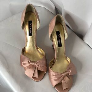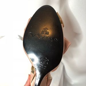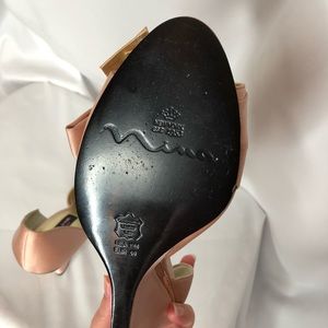 This is a reposh. They run small as like a 9/9.5. The shoes have small signs of wear but in overall good shape. 4inch heel.