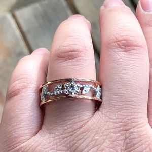 GOLDEN FLORAL RING 5 STAR LOVED STONE WHITE TOPAZ METAL 14K ROSE GOLD OVER 925 STERLING SILVER BAND WIDTH IS APPROX .25” ON THE FINGER includes gift bag PLZ SEE ALL PICS AS THEY’RE A HUGE PART OF THE DESCRIPTION THIS RUNS SMALL IN SIZE PLZ NOTE: to prolong the life of your jewelry, always remove before cleaning, washing your hands/taking showers, applying makeup or lotion and sleeping. All pieces require special care and they can last a lifetime