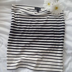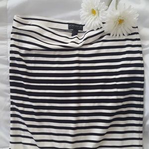 Forever 21 plus bodycon striped skirt. Black and white. Comfy. Worn once. Length is 22 inches. Belt not included.