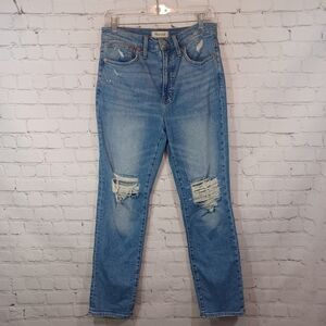These do show wear from use. They are stretched. There is a faded spot in the denim on the front. Overall they are in good used cond. Thanks for checking them out! # 0215