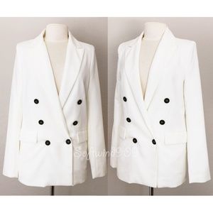 Last 1☝️ White Double Breasted Long Blazer Jacket