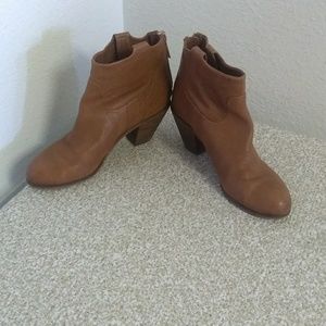 Preowned Sam Edelman Lisle brown leather back zip ankle boots in size 7.5. Heel is 3".