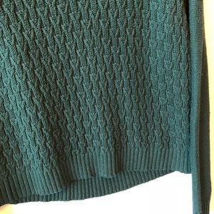๐๐๐๐ป Sweater Weather ๐ป๐๐๐ warm and cozy, thick knit for those cold days, relaxed lose fit. Gently worn, no holes. One slight dark spot on front, barely noticeable. Good used condition. Is a pretty Hunter Green color.