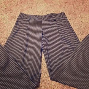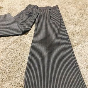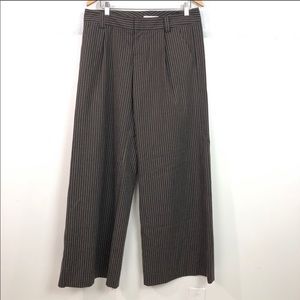 Super wide leg slacks in brown with lighter brown pinstripes. Slight pleat at waist. Size 4, excellent condition, worn once. Made in NYC. Extra wide leg and larger size 4