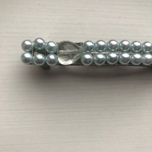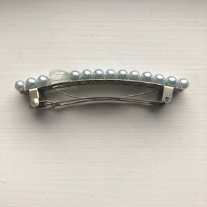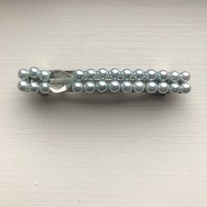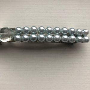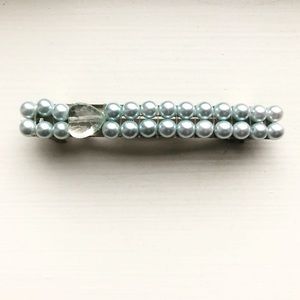 Vintage baby blue pearl bead hair clip / barrette