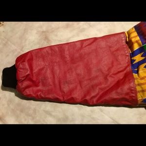 Vintage men’s 90s Iconic Cross Colours bomber jacket, size 1, snap closure, leather sleeves, kente cloth details, Hip Hop Nation , very good condition. Minor imperfections on the sleeves, nothing major.