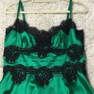 Green and black silk satin and lace lingerie cami for sleep or going out. Only worn once. Great condition. Sold out piece.