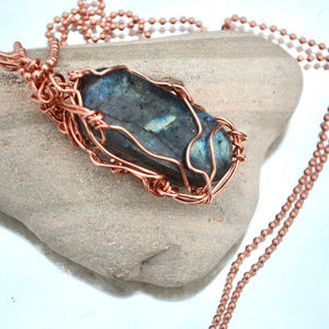 Labradorite Pendant Copper Necklace Chain Solid
