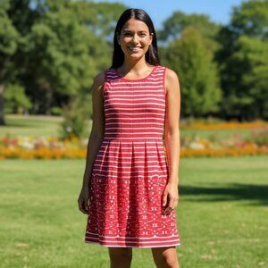 Ann Taylor Button-Down Maroon Shirt with Stripes